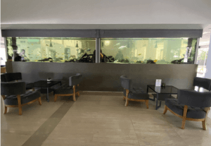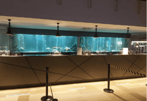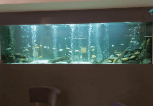 350 x 70 x 150 ebatlarından 2 adet resepsiyon arkası 4500 litre tatlı su akvaryumundan oluşan projemiz 13 yıldır otel müşterilerinin seyir keyfine hizmet ediyor.